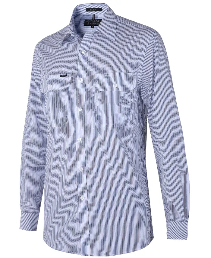 Pilbara Mens Y/D Stripe, Dual Pocket, L/S Shirt