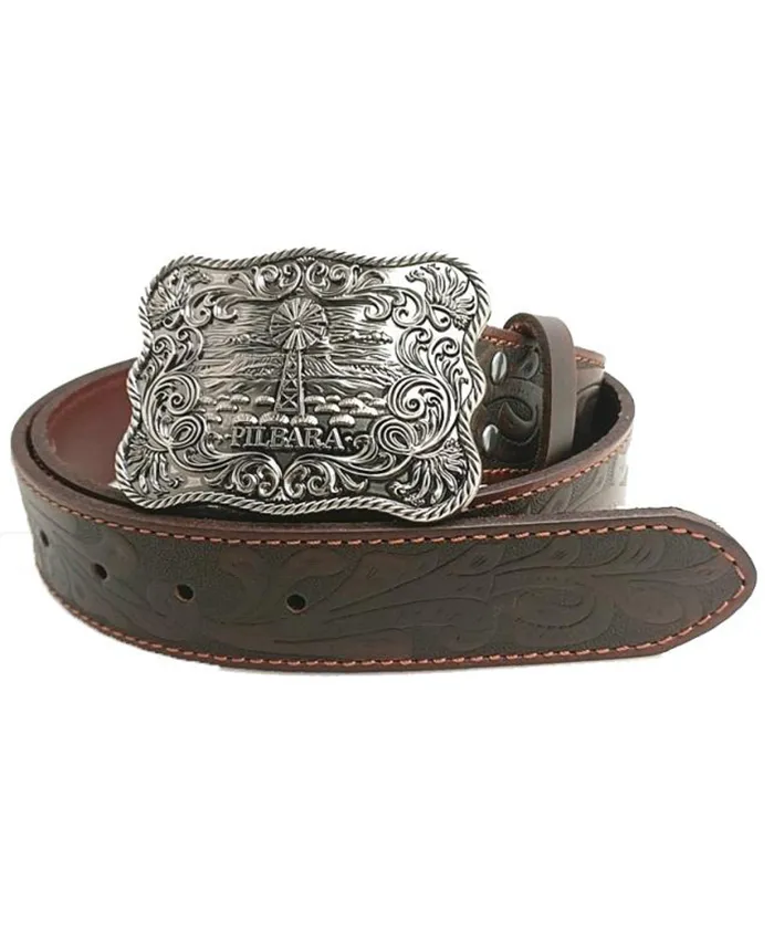 Pilbara Western Rodeo Buckle Tooled Leather Belt